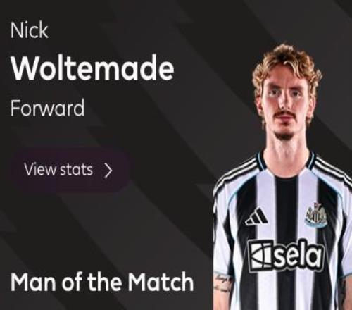英超第17轮,纽卡斯尔联主场2-2战平切尔西,此役上演梅开二度的纽卡前锋沃尔特马德当选全场最佳球员。