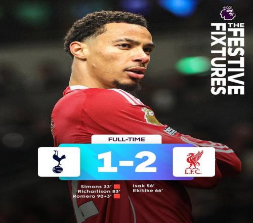 此役客场对阵热刺,利物浦凭借伊萨克和埃基蒂克各入一球,以2-1的比分取得胜利。