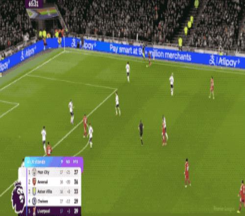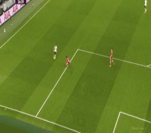 第64分钟,热刺差点扳平比分,穆阿尼的传中越过阿利松的头顶,击中横梁弹了出来。
