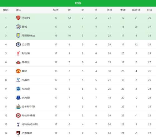 随着曼城30,阿森纳10,利物浦21,切尔西22,英超最新积分榜
