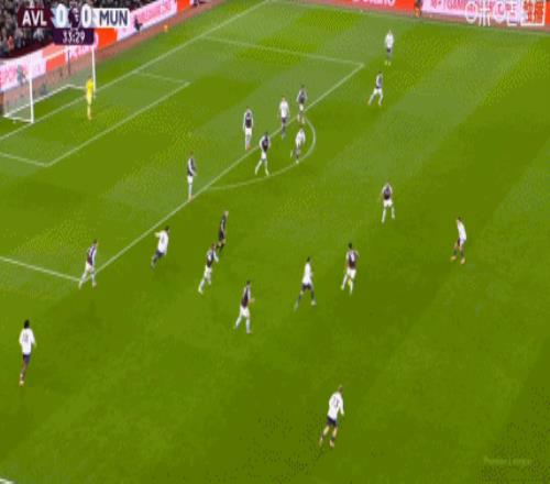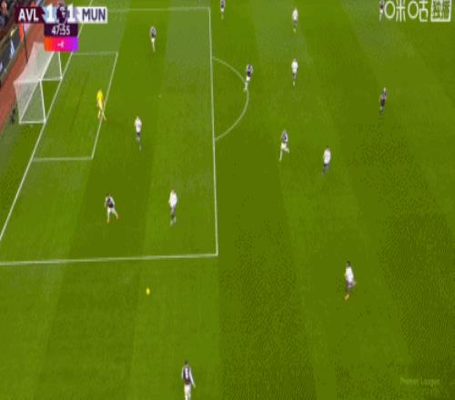 第45分钟,纯个人能力!摩根-罗杰斯内切抽射挂死角,维拉1-0领先曼联!
