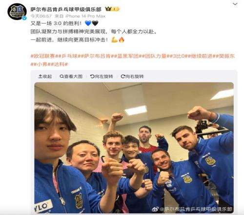 北京时间12月20日凌晨2点,乒乓球欧冠1/8决赛次回合,萨尔布吕肯迎战波兰球队比亚韦斯托克多伊利迪,樊振东迎来个人欧冠首秀,最终樊振东3-0轻松取胜,萨尔布吕肯两回合6-2晋级欧冠八强。