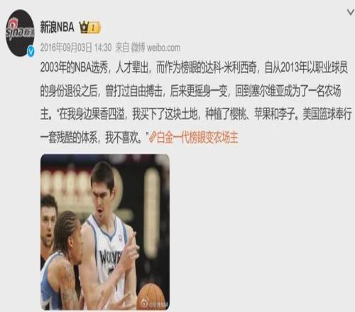 卡尔·马龙喜欢当农场主,米利西奇也回到了塞尔维亚种苹果,大家都有光明的未来。