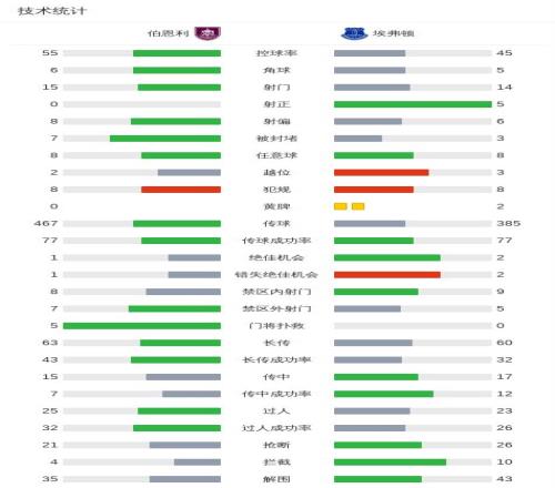 北京时间12月27日英格兰足球顶级联赛 联赛 第18轮,伯恩利主场对阵埃弗顿。上半场双方互有攻防,但都未能攻破对方球门。下半场,贝托脚后跟射门、阿尔卡拉斯倒钩射门均被杜布拉夫卡神奇化解。比赛尾声,杰登-安东尼送出斜塞,弗莱明推射击中立柱弹出,错失绝杀的机会。最终,伯恩利0-0战平埃弗顿。